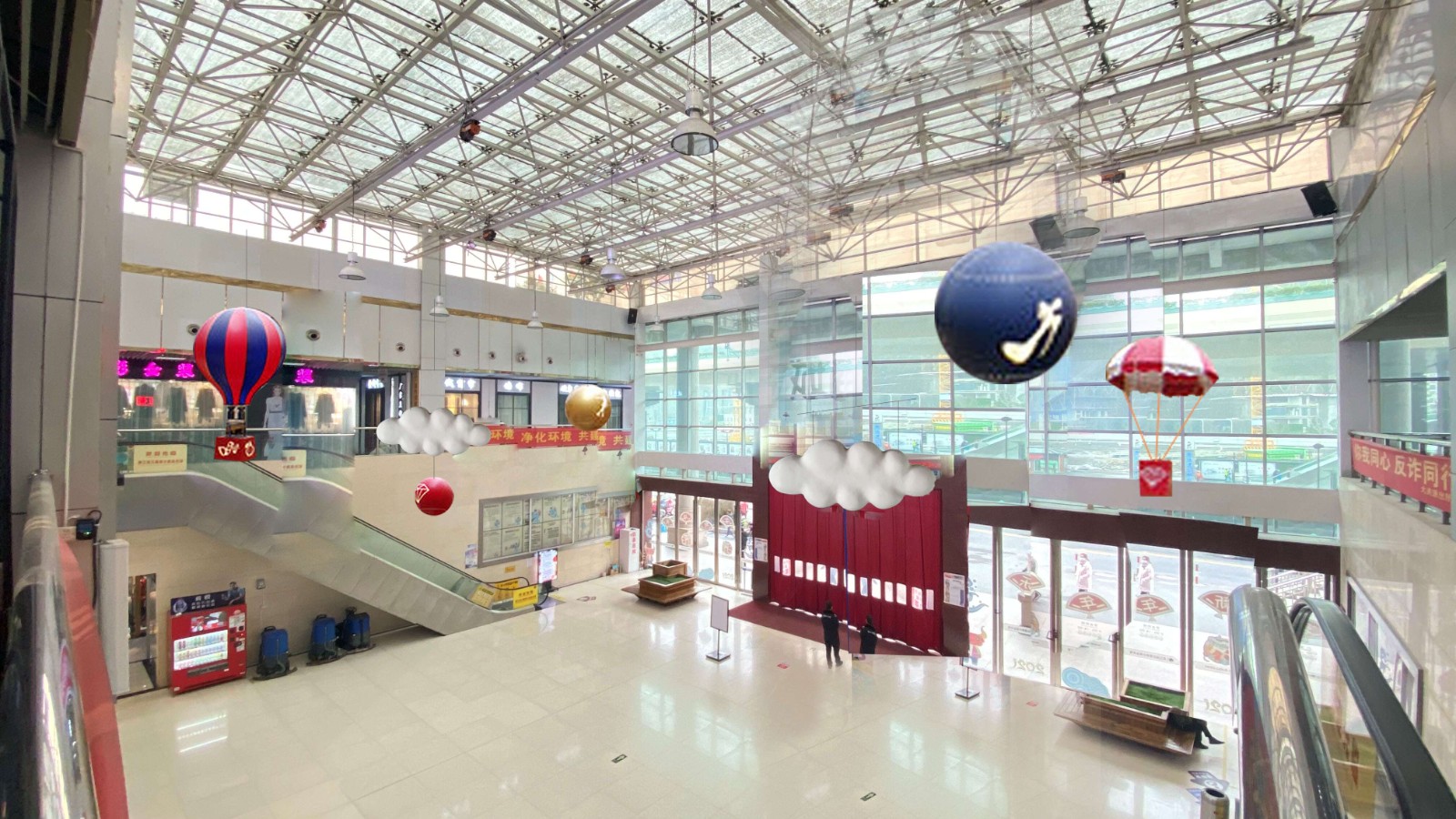 中國傳統(tǒng)春節(jié)已經過去,原本“張燈結彩”的裝飾雖喜慶但不夠新鮮奪目。為了打破顧客的審美疲勞,商城對現(xiàn)有的美陳進行了升級,通過對材料和色彩的運用,這次升級選擇了五彩繽紛的熱氣球、降落傘,搭配高低錯落的云朵掛飾,不僅能抓住消費者的眼球,也營造出了獨特的夢幻之感讓商城煥然一新。